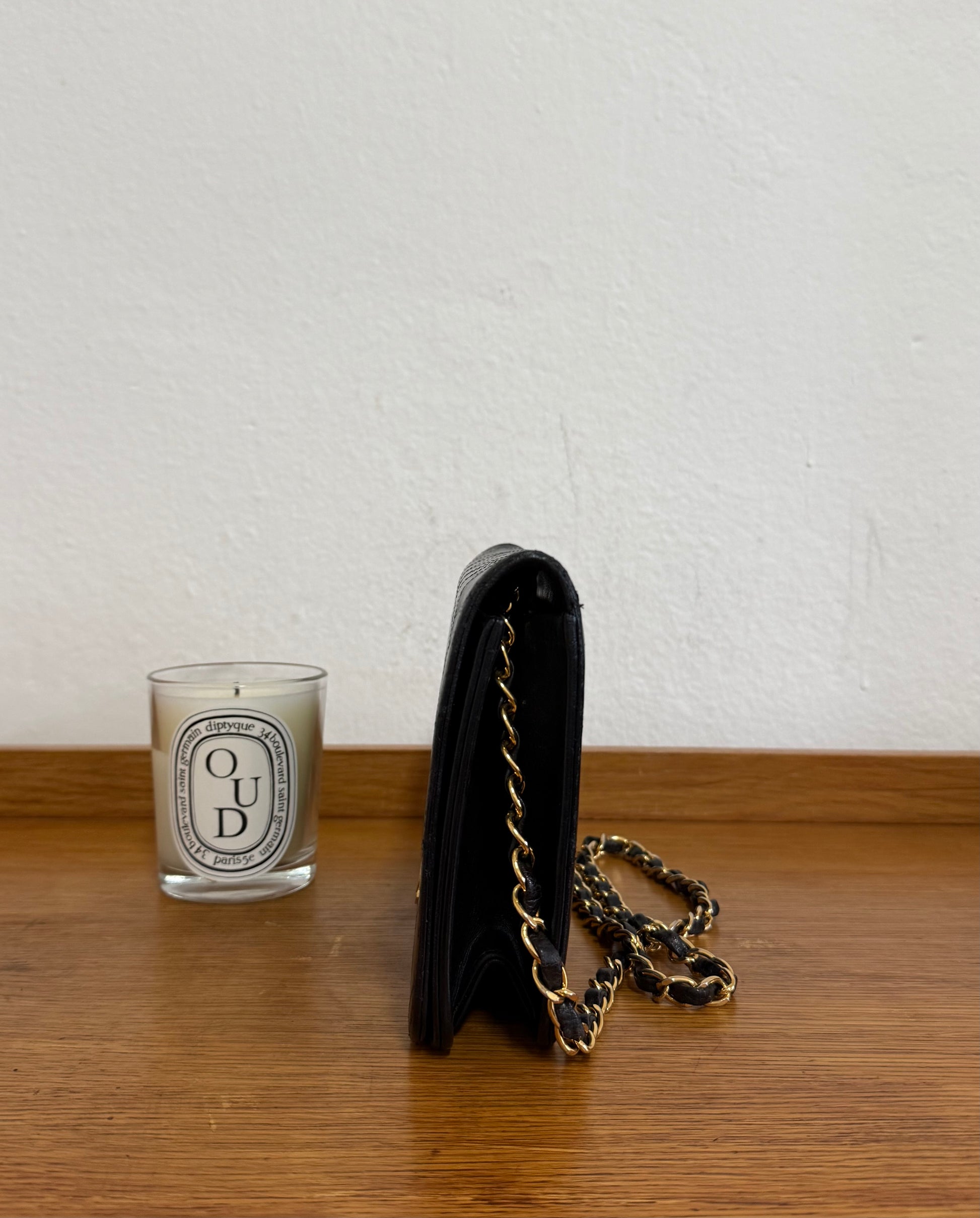 Elegantní Chanel Full Flap z jemné jehněčí kůže v černé barvě s hardwarem pozlaceným 24k zlatem. Nadčasová a univerzální silueta, kterou lze snadno proměnit z denní kabelky na večerní psaníčko – stačí jen schovat řetízek dovnitř.
