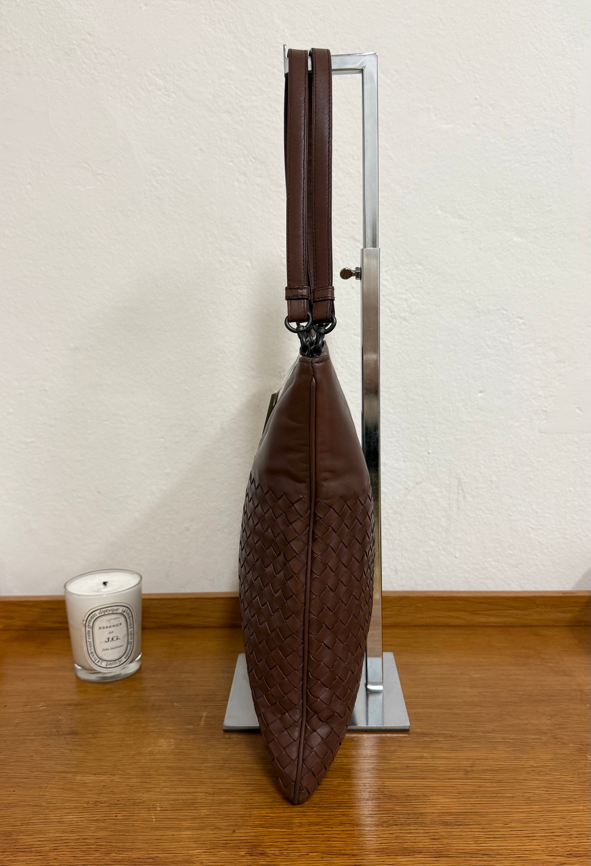 Nádherná Bottega Veneta Intrecciato shoulder bag v nádherné čokoládové barvě. Ikonické ručně proplétané pásky a čistá nadčasová silueta vystihují tichý luxus značky bez viditelných log. Měkká, máslově hebká kůže.