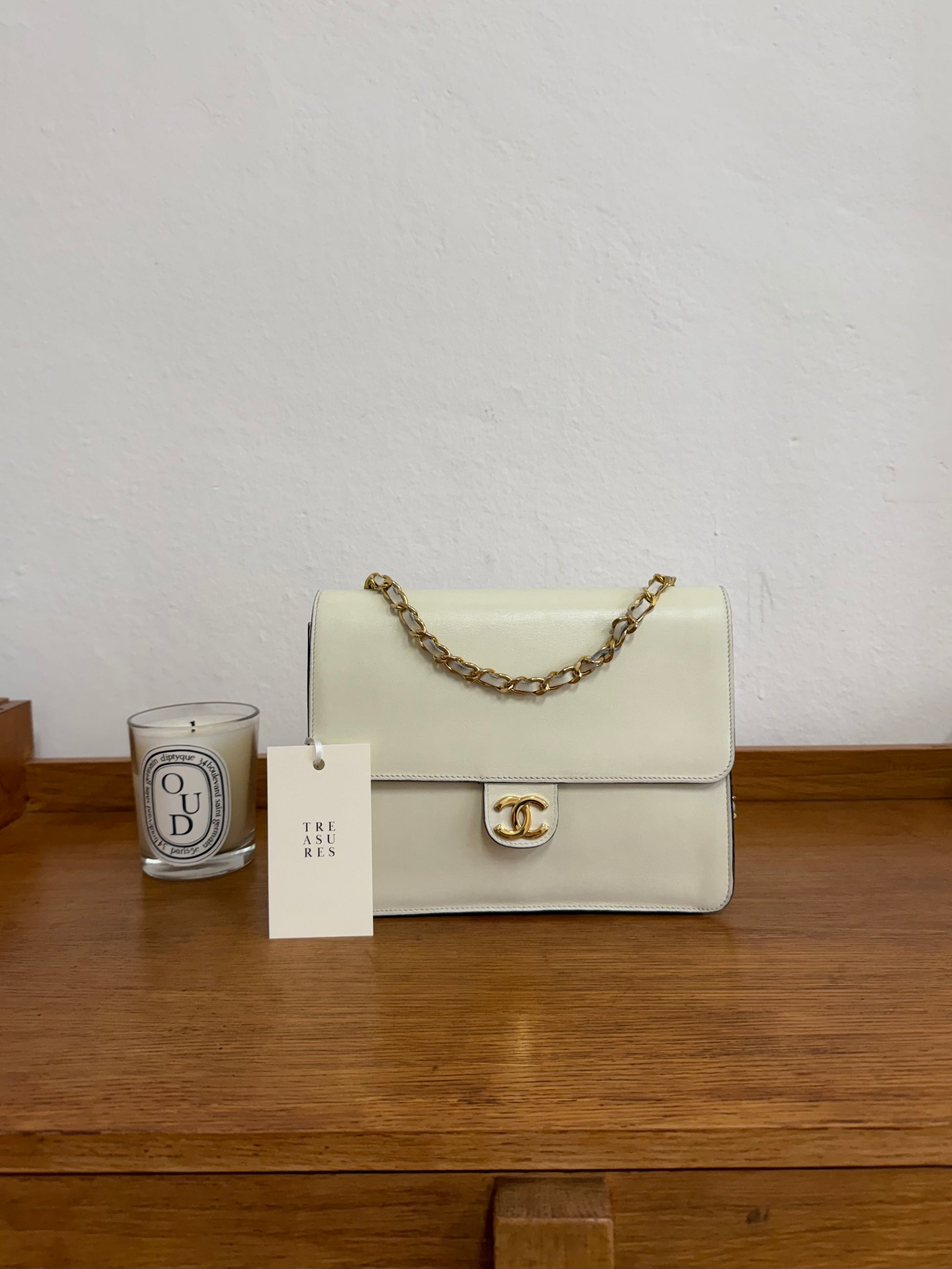 CHANEL BOX CALF SINGLE FLAP CREAM