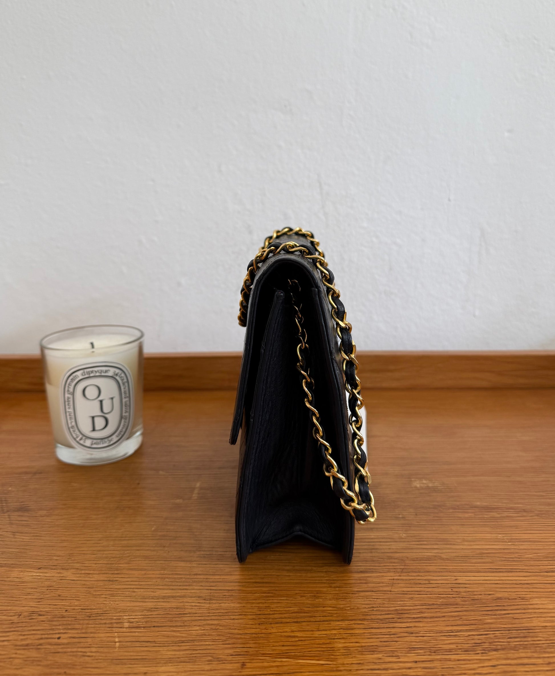 CHANEL CLASSIC SINGLE FLAP BAG LAMBSKIN BLACK 24K GOLD HW
