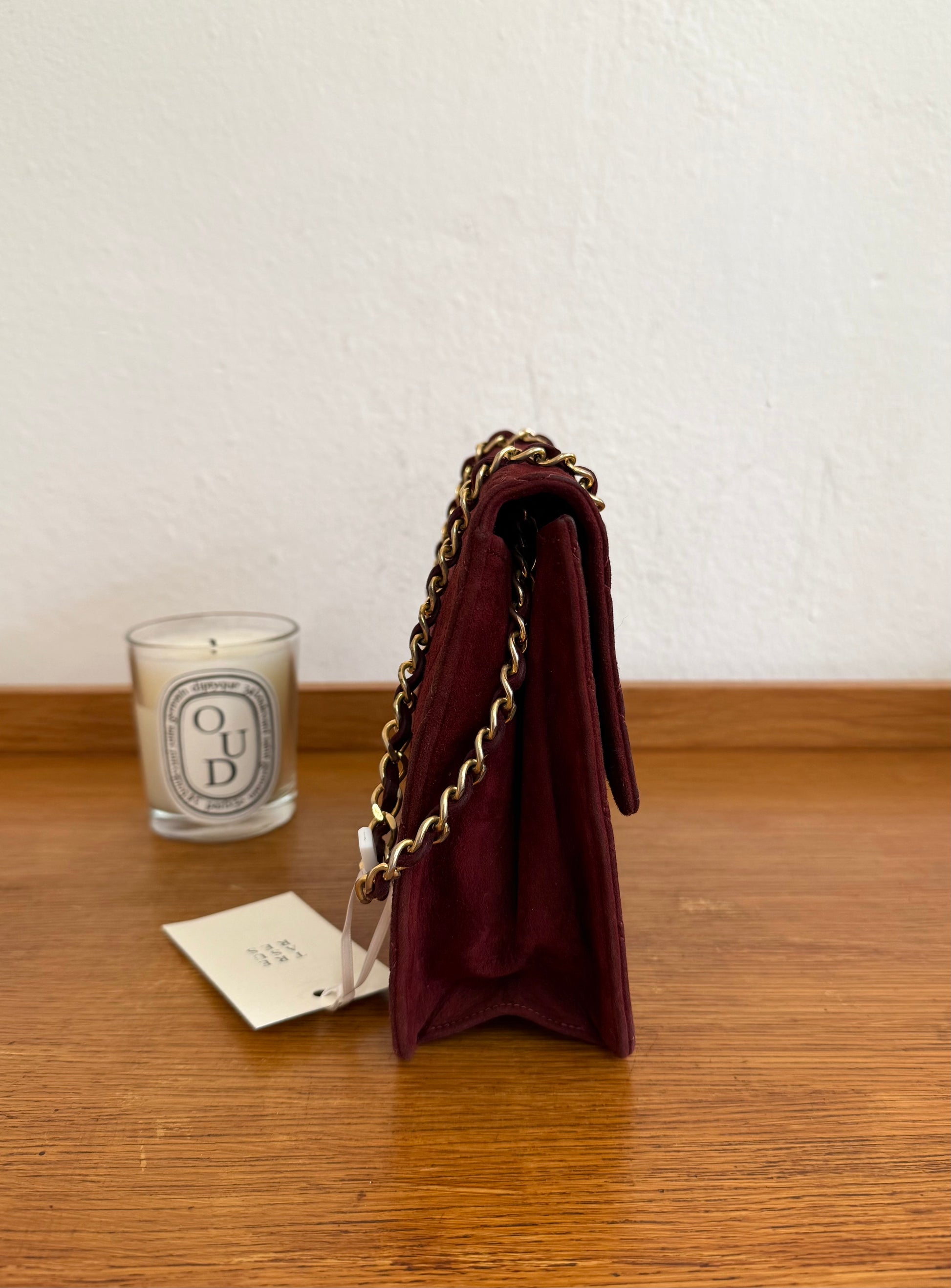 CHANEL CLASSIC SUEDE BURGUNDY SINGLE FLAP BAG