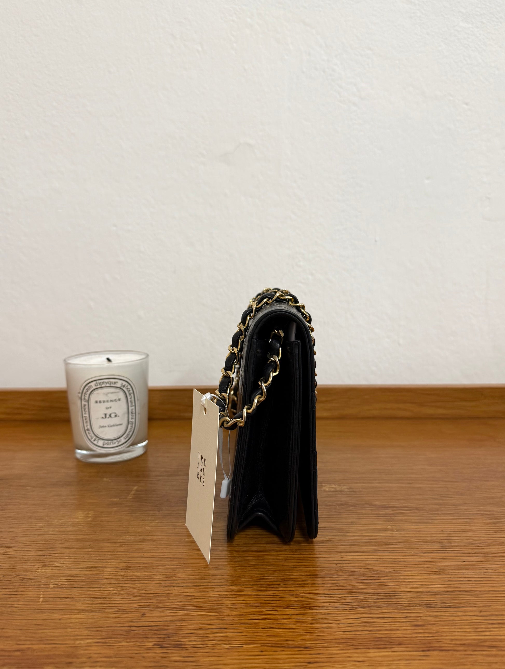 Elegantní Chanel Full Flap z jemné jehněčí kůže v černé barvě. Nadčasová a univerzální silueta, kterou lze snadno proměnit z denní kabelky na večerní psaníčko – stačí jen schovat řetízek dovnitř.