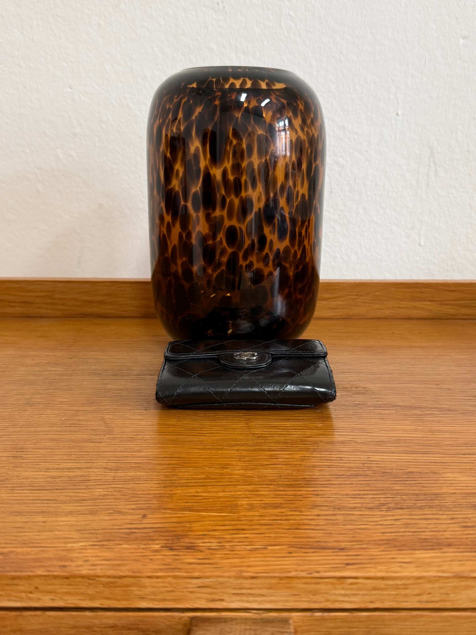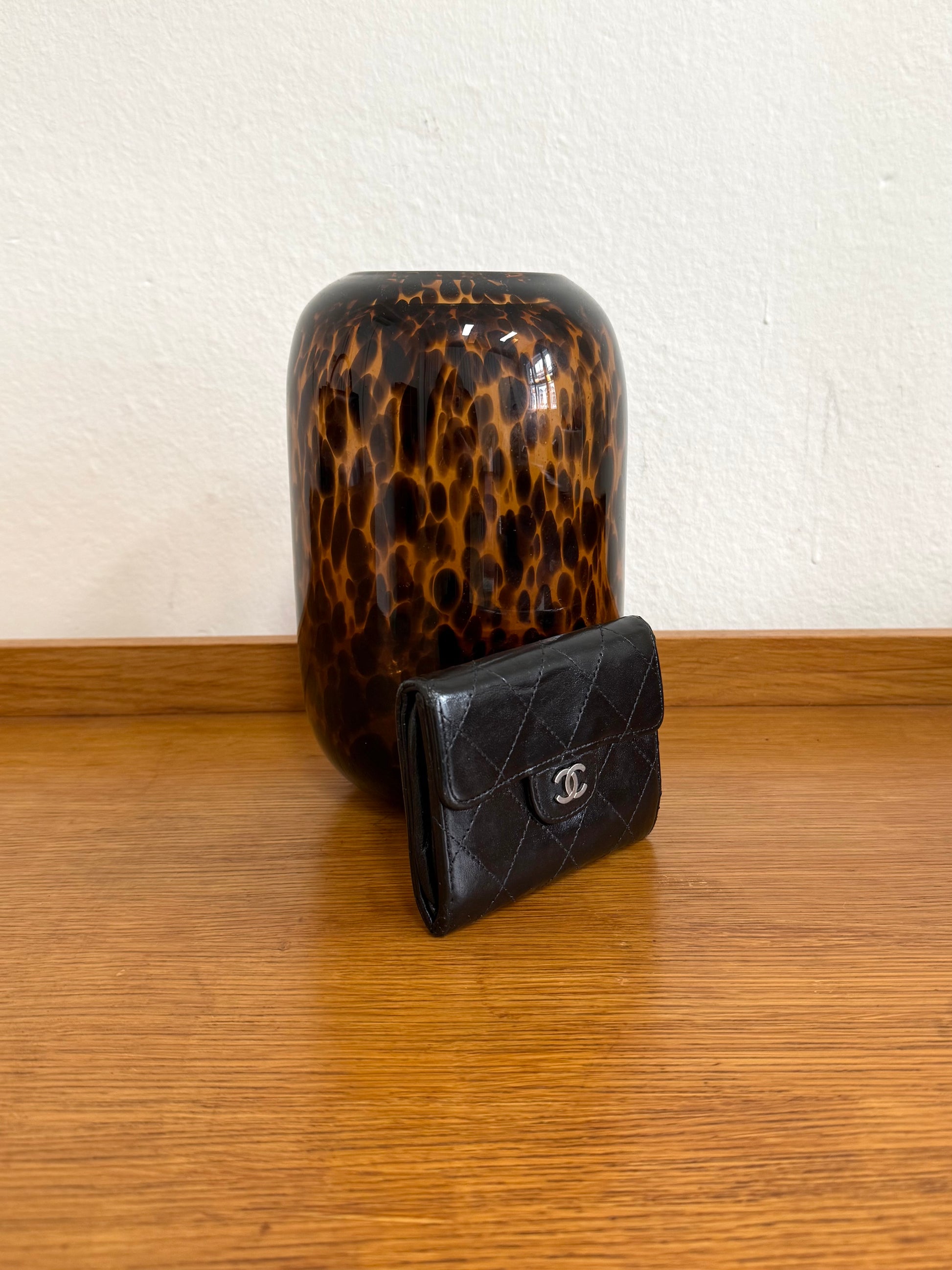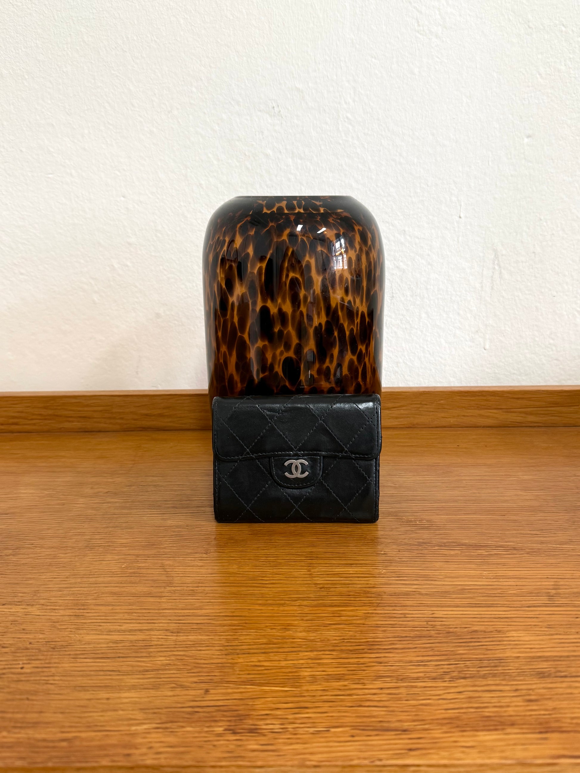 Chanel mini peněženka z černé kůže v elegantním nadčasovém provedení. Kompaktní, stylový kousek, který lze nosit na řetízku jako doplněk nebo jako klasickou peněženku do kabelky.