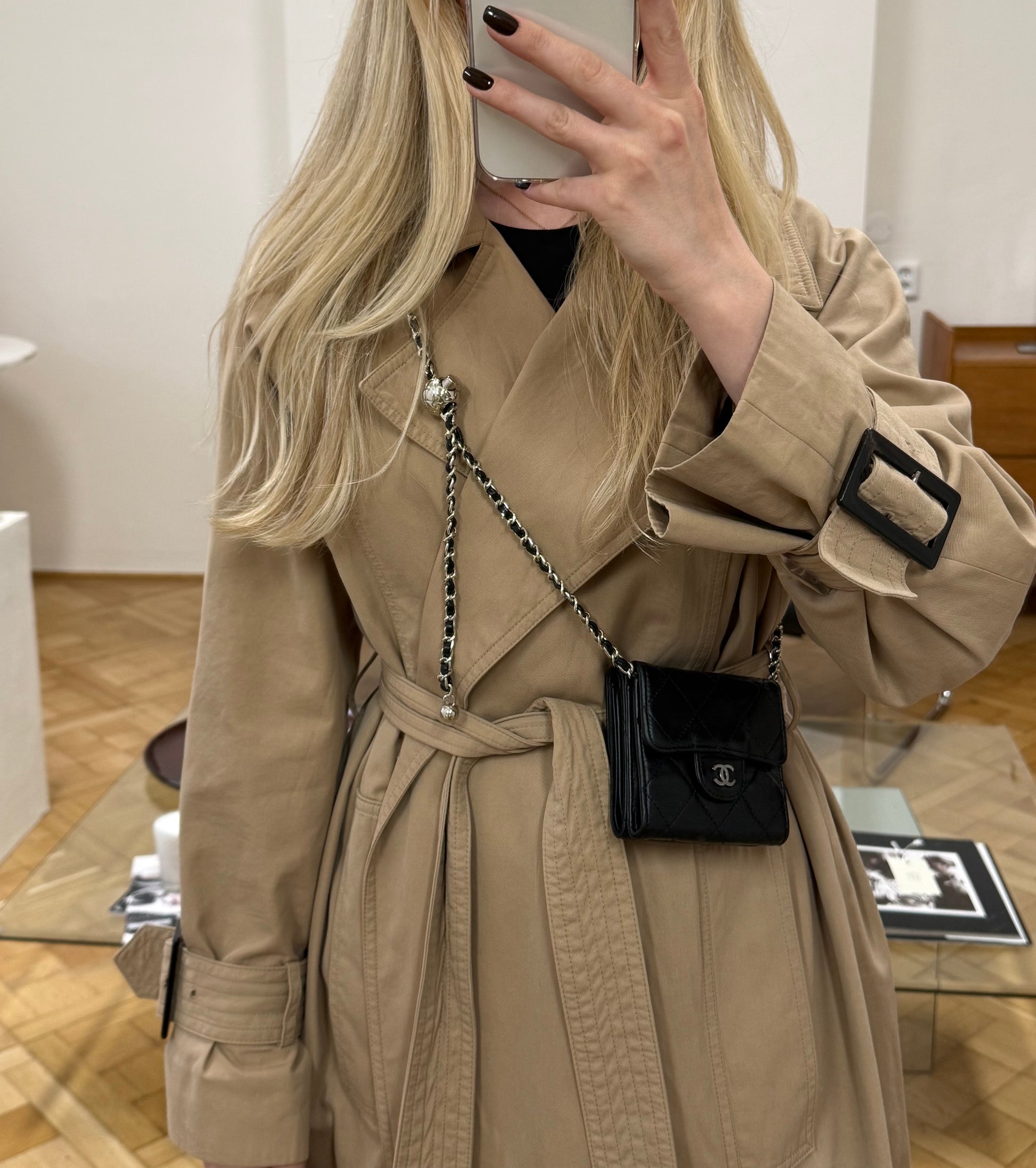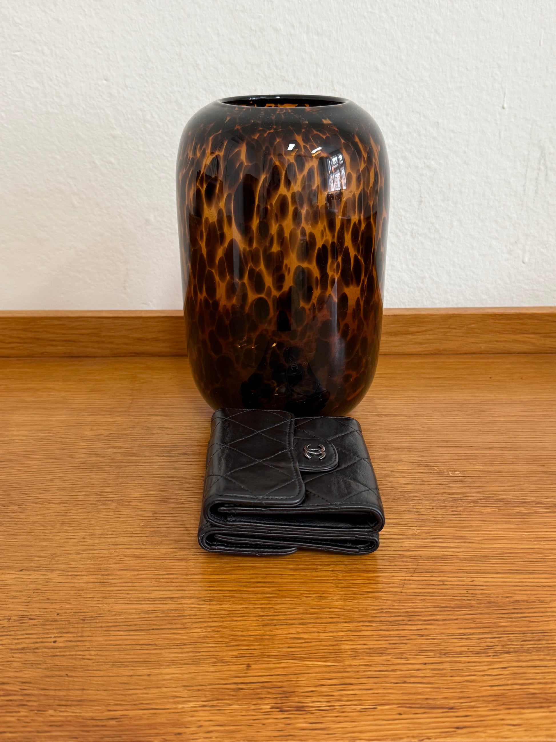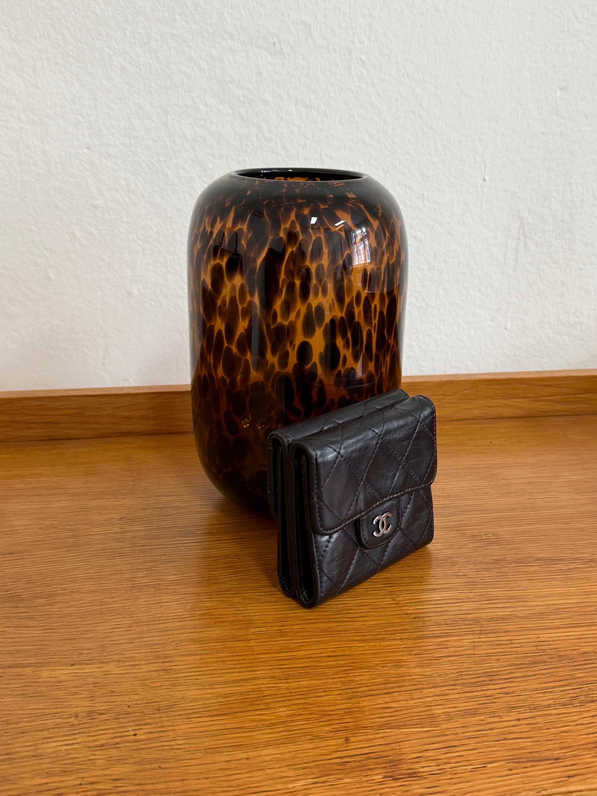 Chanel double-sided malá peněženka z černé kůže ze série 10 se stříbrným hardwarem. Nadčasový, elegantní kousek, který lze nosit jako jemný doplněk na řetízku nebo jako klasickou peněženku do kabelky.