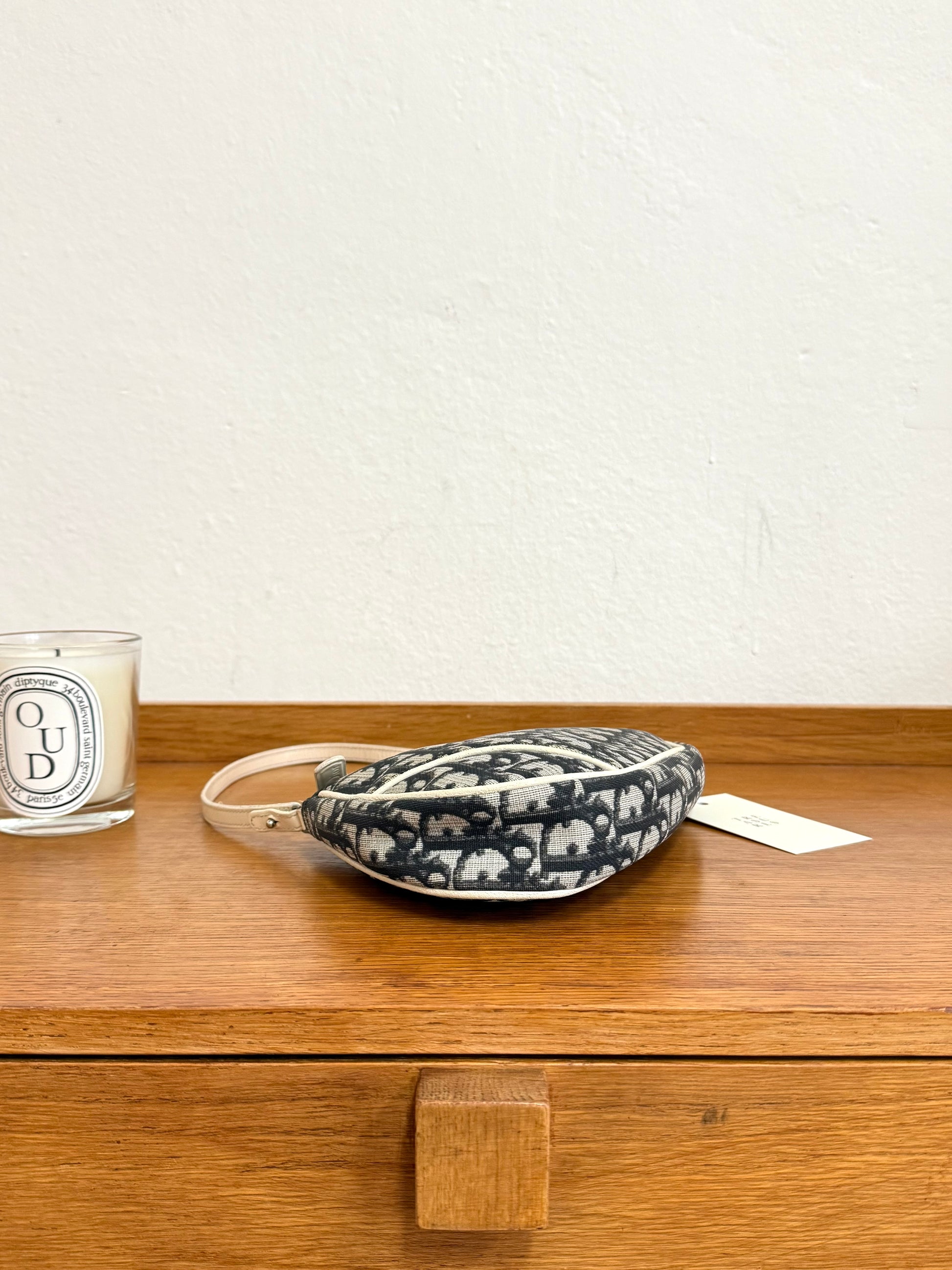 Ikonická Dior Saddle bag v Dior Oblique monogram canvasu s béžovými koženými detaily. Model z éry Johna Galliana, který dodnes patří mezi nejžádanější kousky vintage Dior. Nadčasový tvar sedla a elegantní silueta pro každý den.