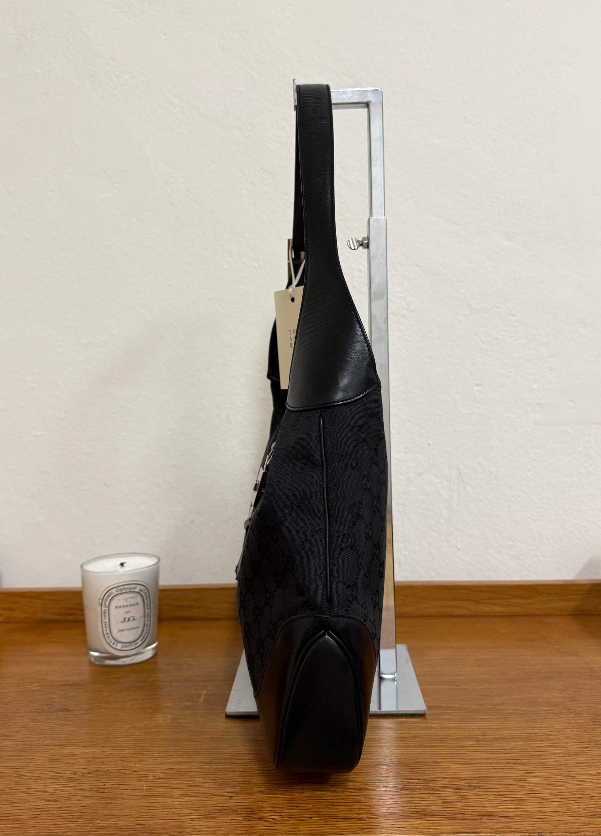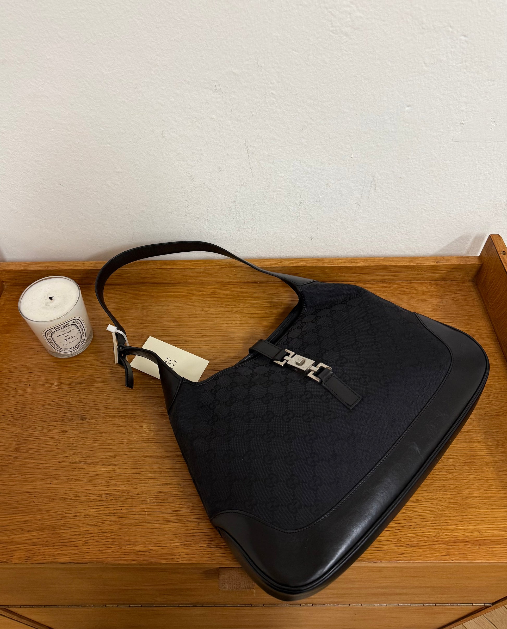 Ikonická Gucci Jackie v klasickém GG monogramu se stříbrným hardwarem. Nadčasová a univerzální silueta.