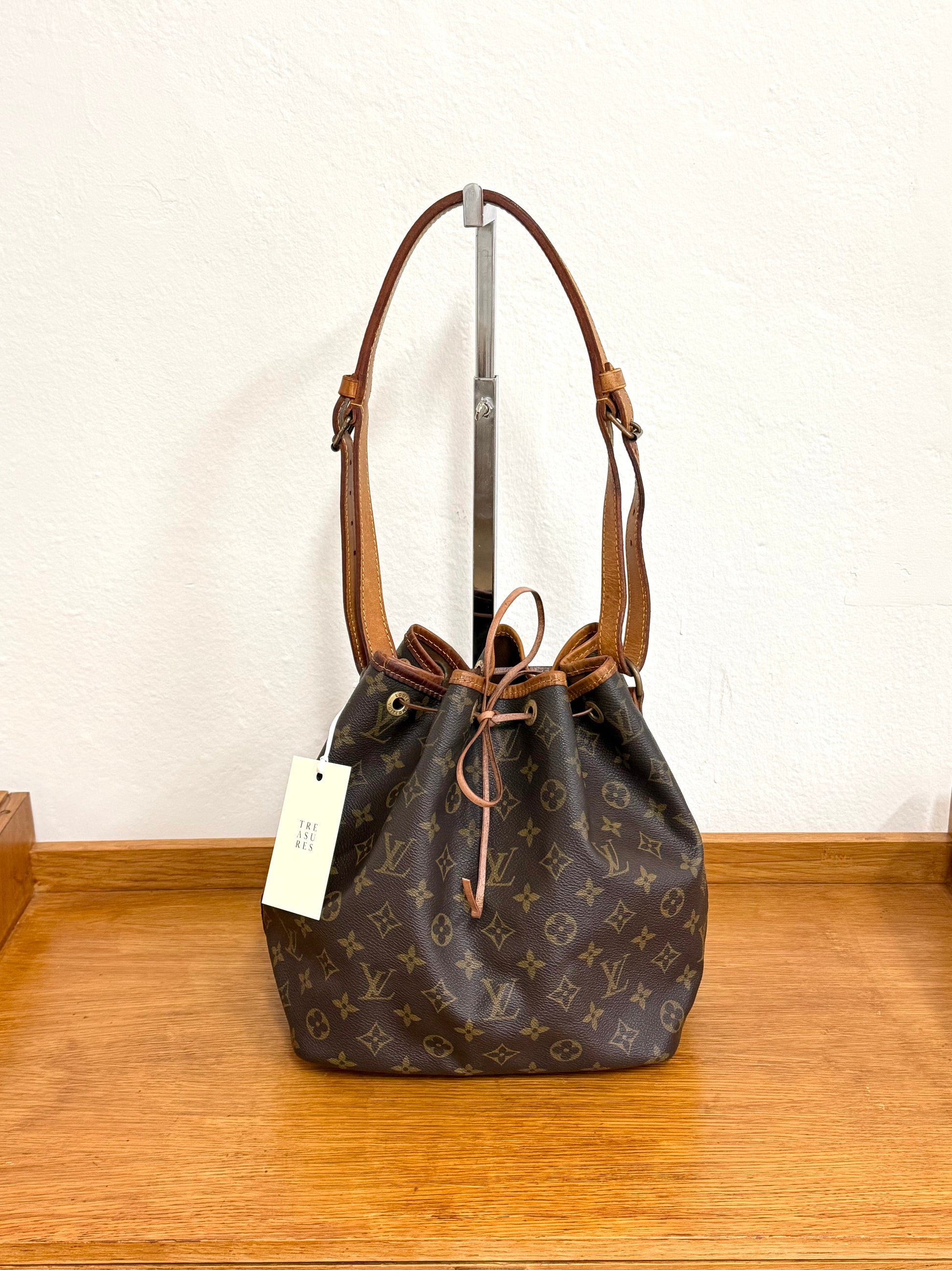 Klasická Louis Vuitton Petite Noé z odolného monogram canvasu s koženými prvky. Nadčasový bucket bag, který se skvěle hodí pro každodenní nošení, prostorný a přitom elegantní.