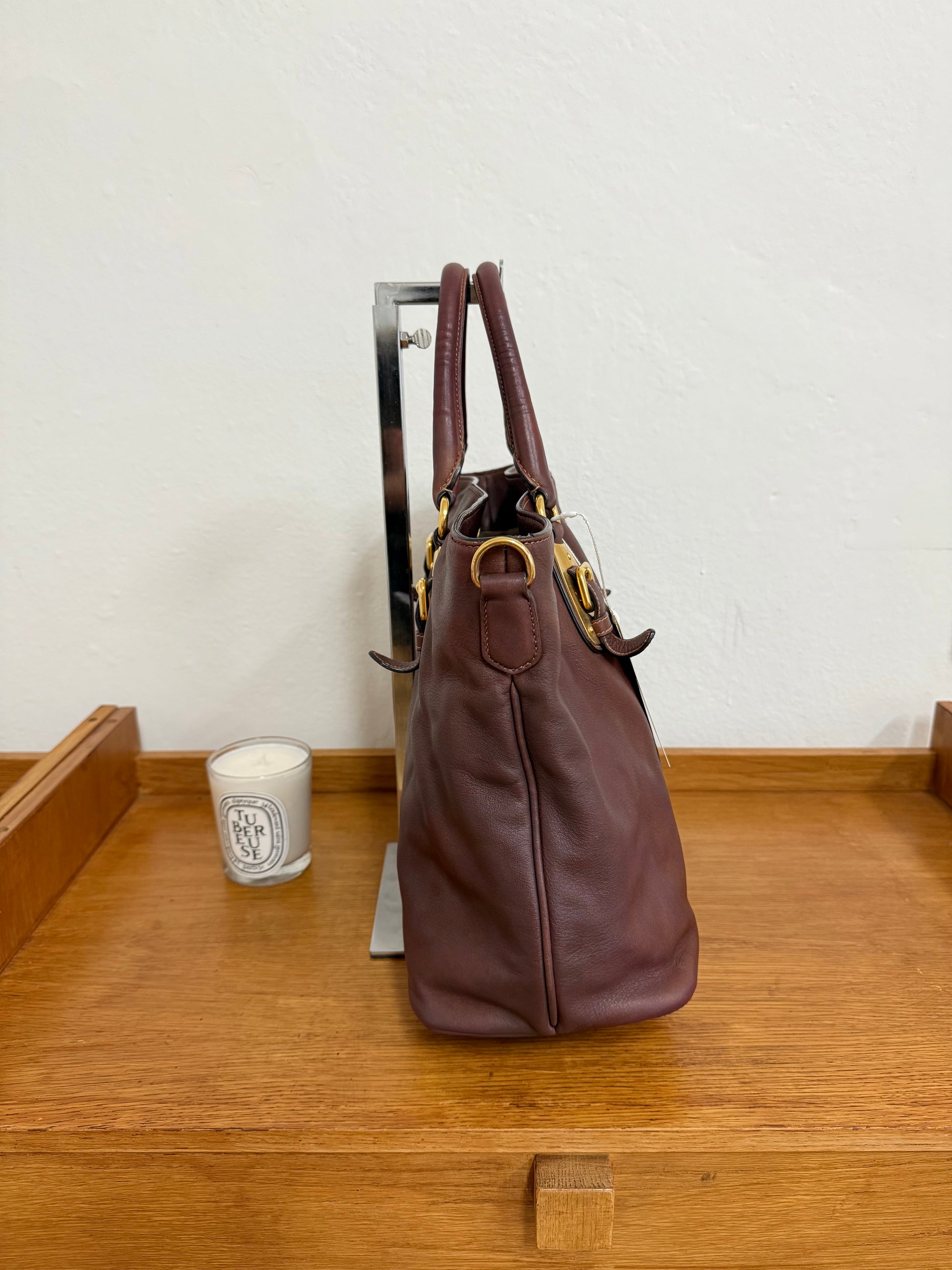 PRADA BURGUNDY SHOULDER TOTE BAG