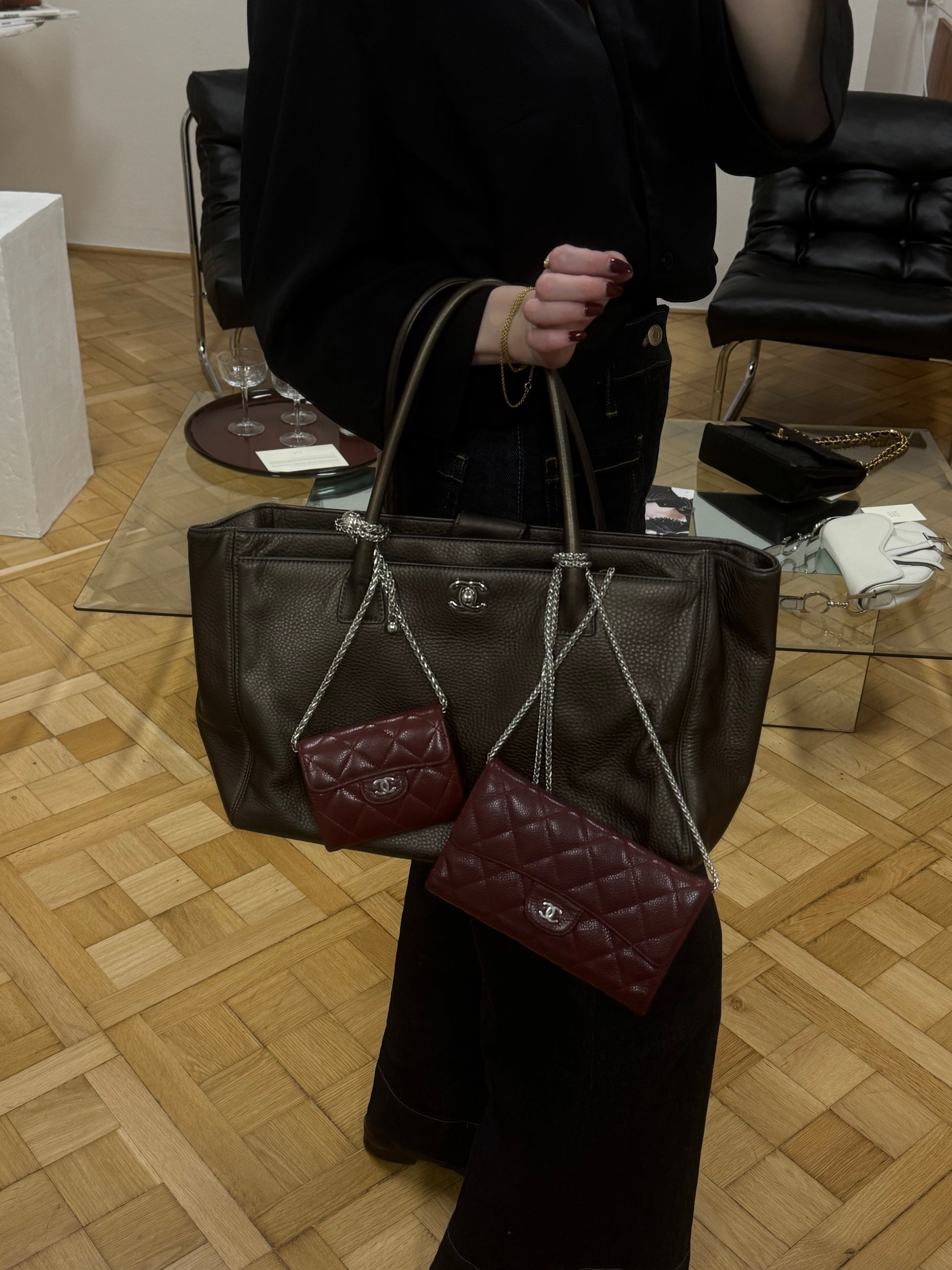 Již nesehnatelná ikonická business kabelka Chanel Executive Tote z grained hnědé kůže s lehkými odlesky se stříbrným hardwarem. Jak už název napovídá, model Executive byl vytvořen jako sofistikovaná business kabelka – dokonale strukturovaná, s praktickým tvarem a přehledným vnitřním uspořádáním.